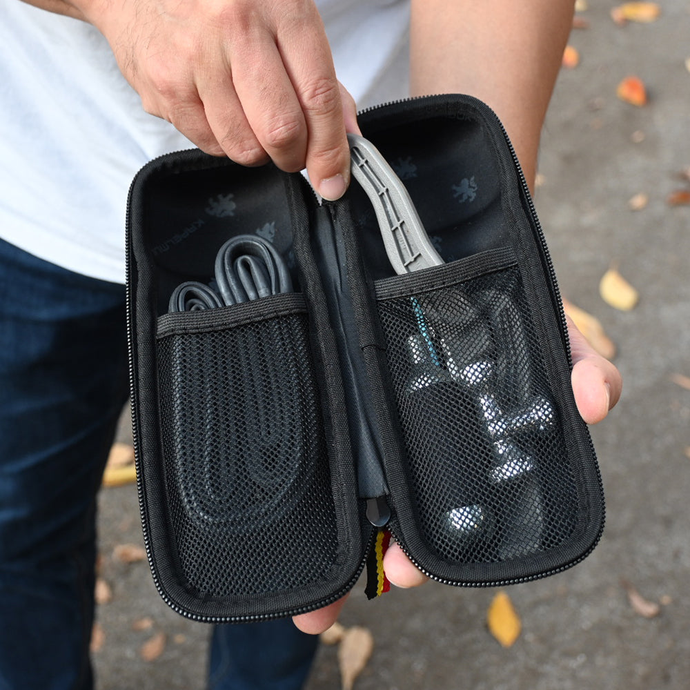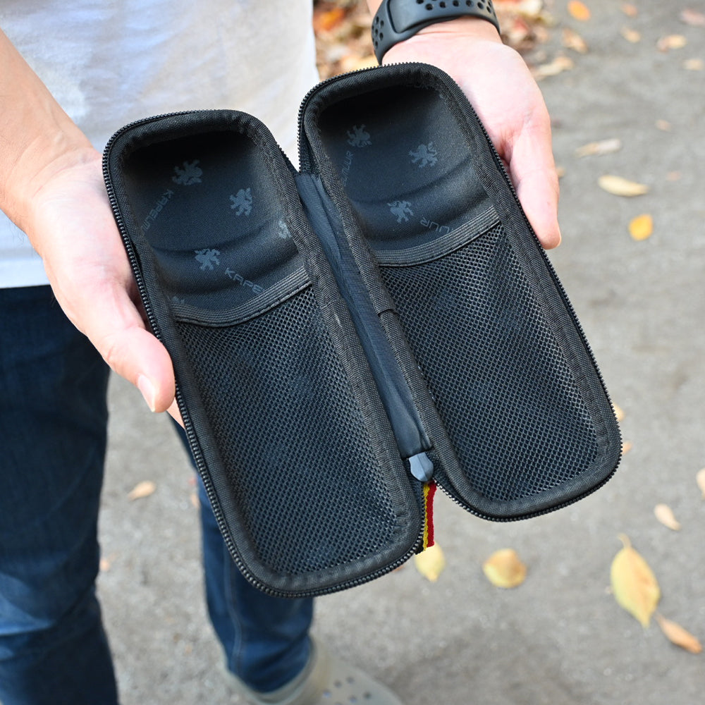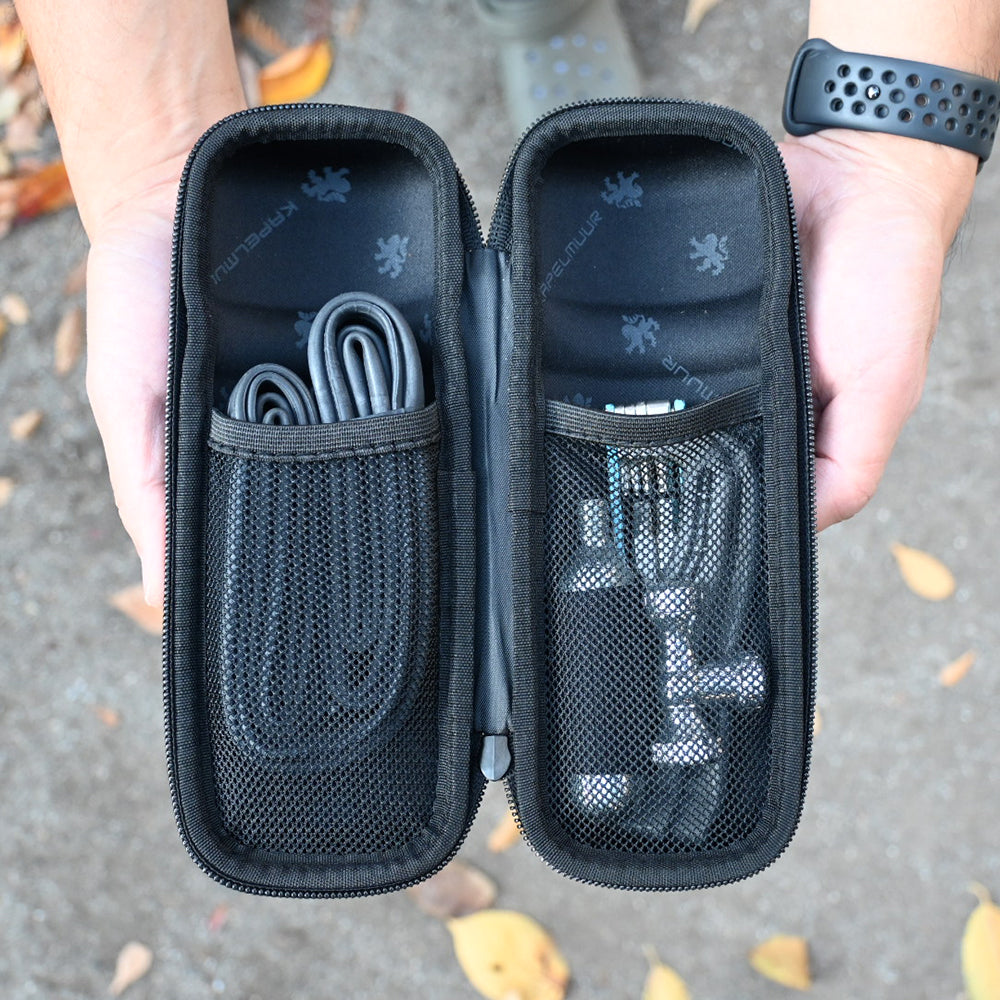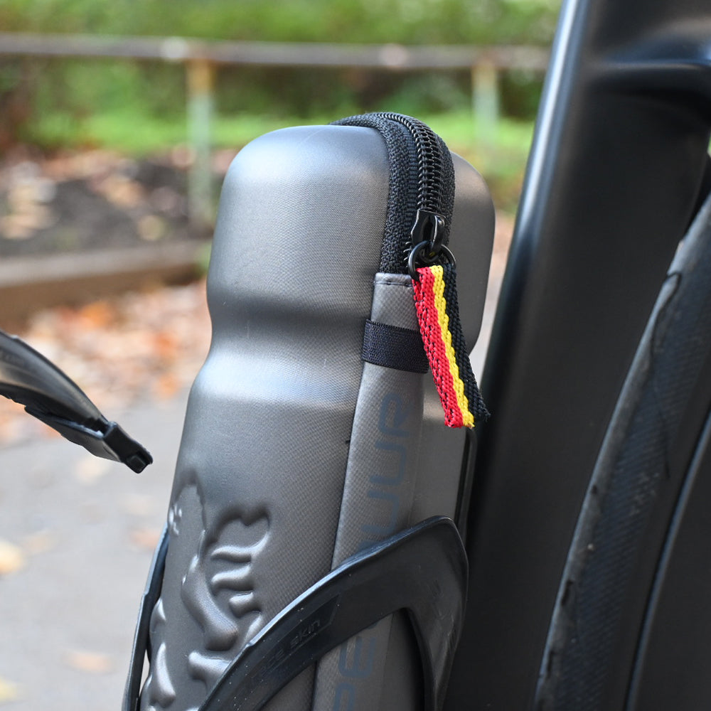 ボトルケージにぴったり入る大きさで、縦に大きく開くセミハードタイプのジップツールケースです。
