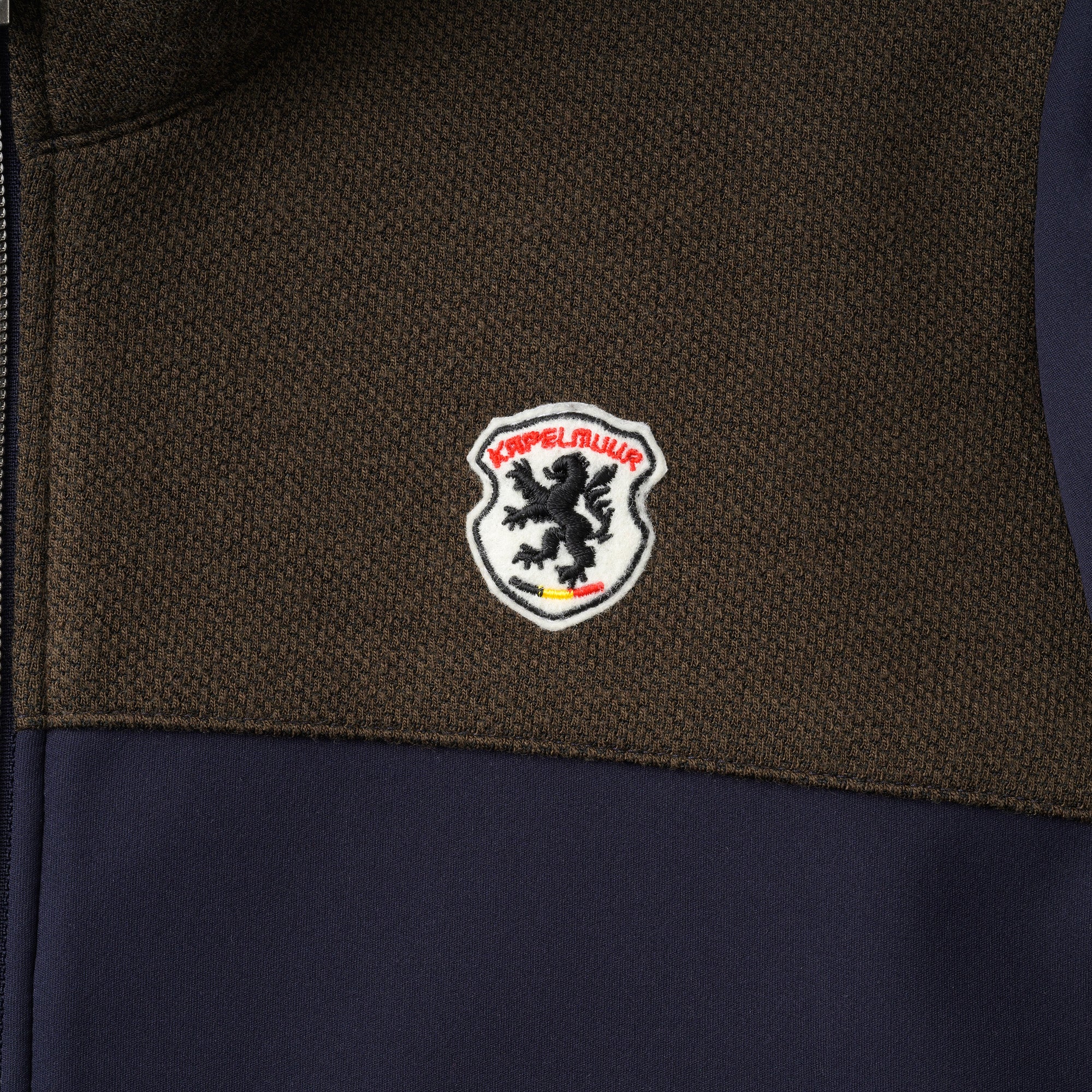 間にフィルムをボンディングすることでより保温性を高めます。また肩から前身胸にかけてはウール混生地を重ね暖かみがあります。