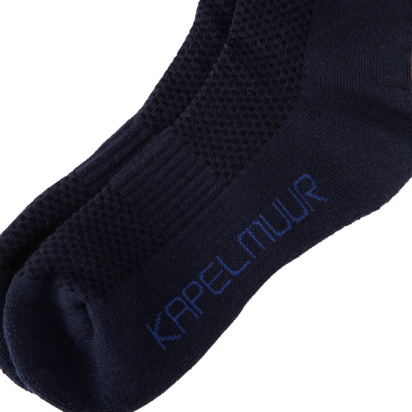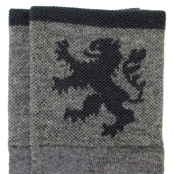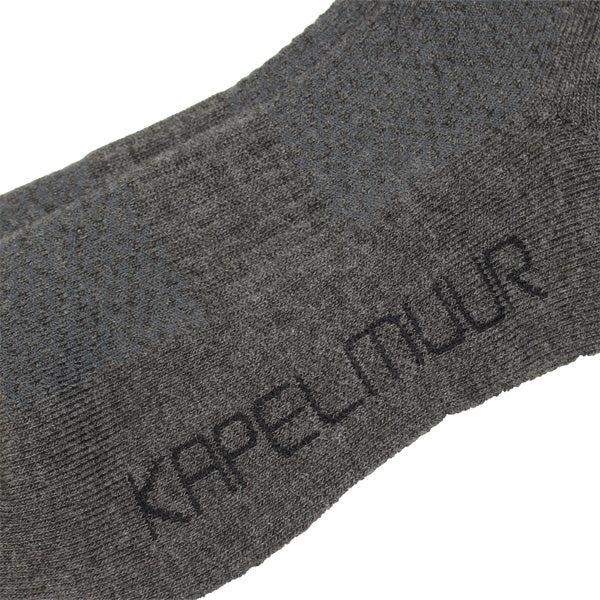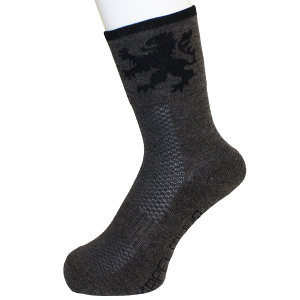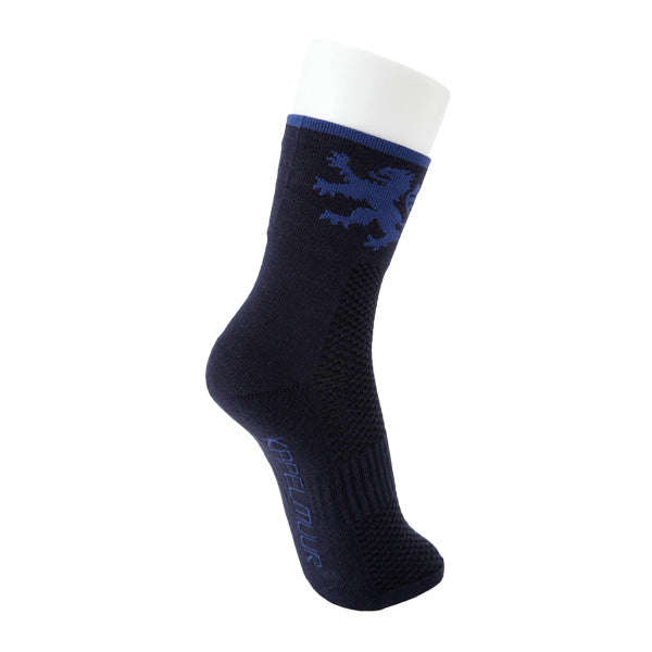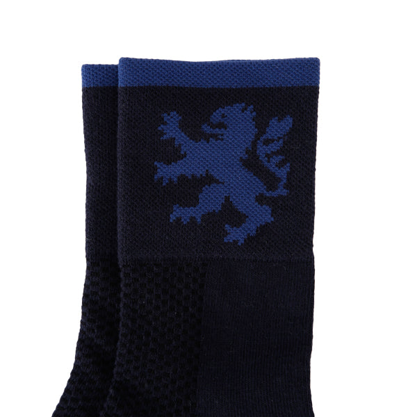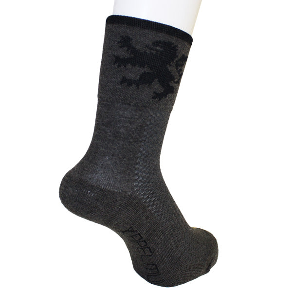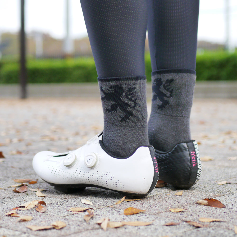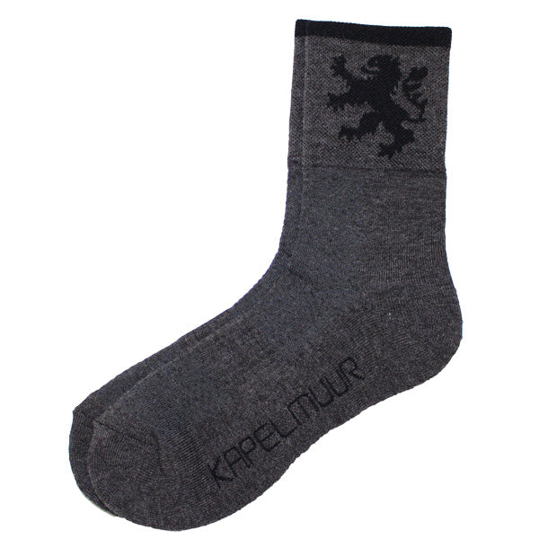 ヨーロッパ基準の少し長めの足首部分は、他のサイクルソックスよりさらに少し長くした防寒仕様。また、汗止めのためしっかりした厚手で、KAPELMUURライオンを編み込みました。