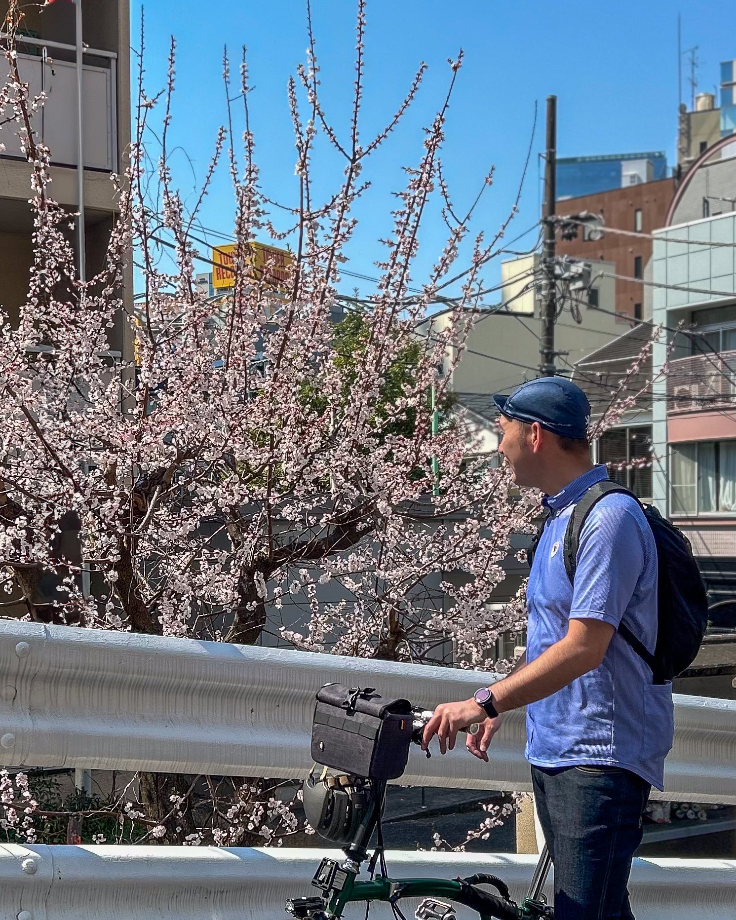ただ、サイクリング専用のウェアだと、そのまま街歩きをするのは少し気が引けることも。。。そこで活躍するのが、KAPELMUURの 襟付きシャツジャージ&デニムロングパンツ の組み合わせ!