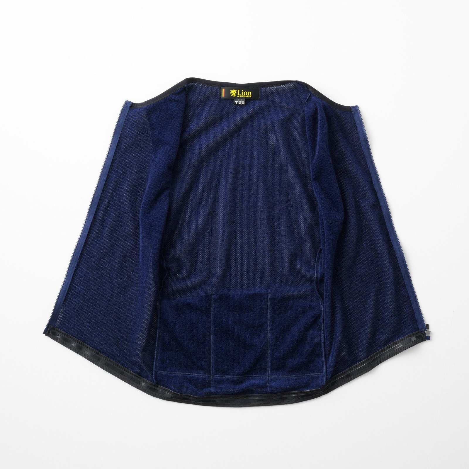 裏は起毛、表はメッシュという異なる性質の素材を組み合わせ、ふわりとした起毛部分が空気層を作ることにより、高い保温性を実現。